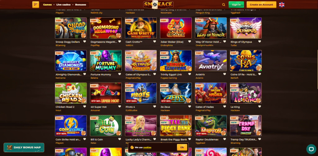 Wenn Vielfalt die Würze des Lebens ist, dann ist die Spielbibliothek von Smokace ein wahres Feuerwerk. Unterstützt von Top-Entwicklern wie NetEnt, Play’n GO und Evolution Gaming, bietet sie über 2.000 Spiele für jeden Geschmack.